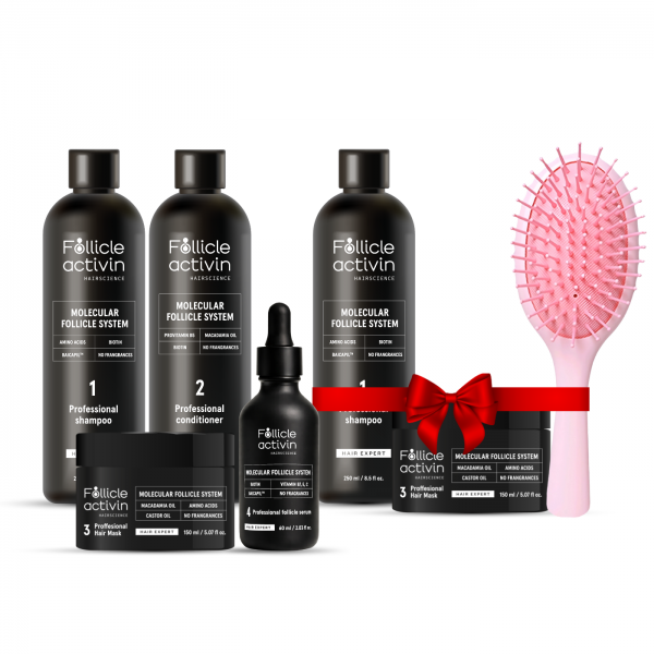 Pilnas Follicle Activin kursas: regeneruoja plaukų augimą ir apimtį + ANTRAS RINKINYS DOVANŲ