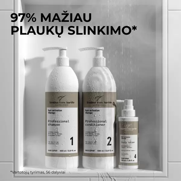Šampūnas (1000ml): Tepkite ant drėgnų plaukų, leiskite suputoti ir nuplaukite.